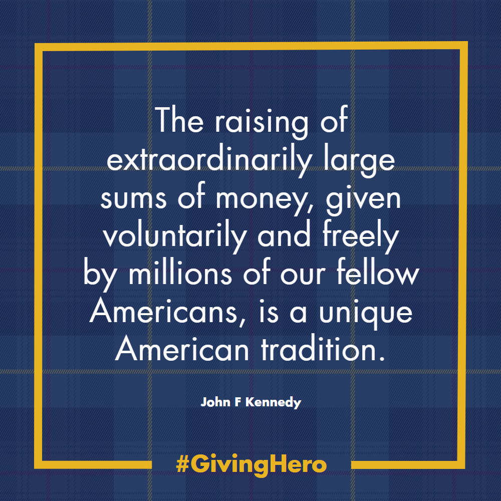 Join us in the online tribute by sharing the story of the #GivingHero that makes your world a better place! Please post your story (on Facebook and Twitter) using the hashtag: #GivingHero